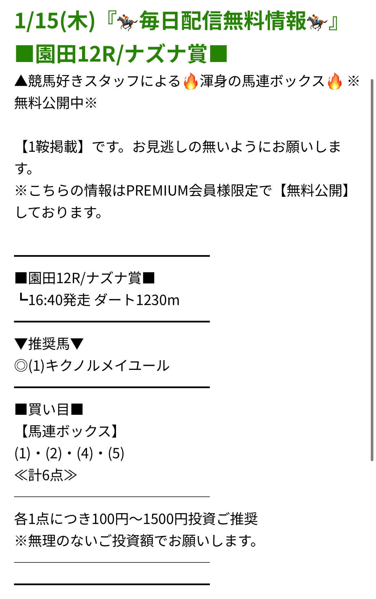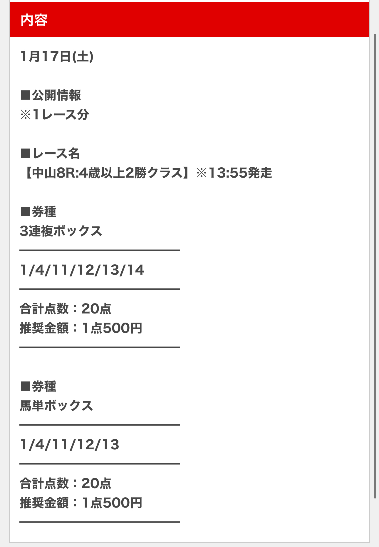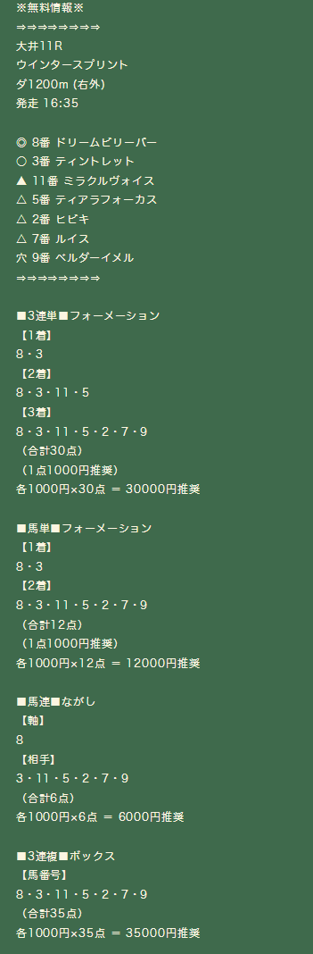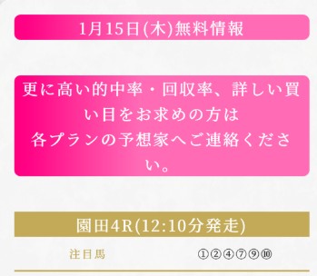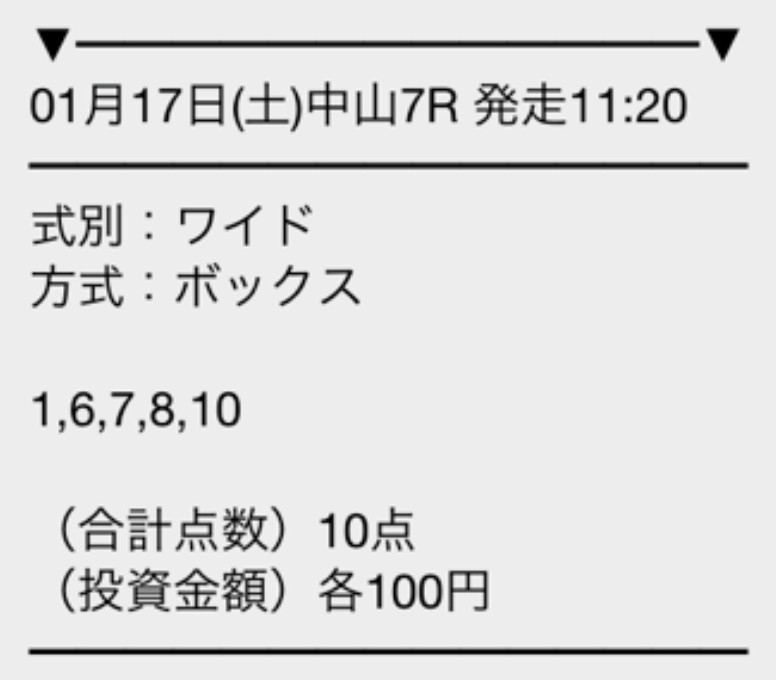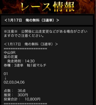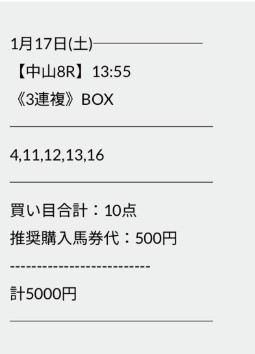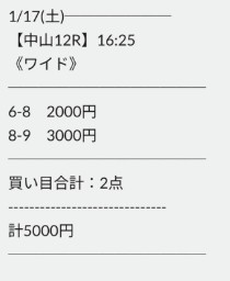 sEj5856さん1月17日(土)の無料予想2鞍提供2鞍的中