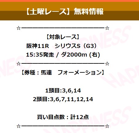 9月9日(土)ハピネスの無料予想