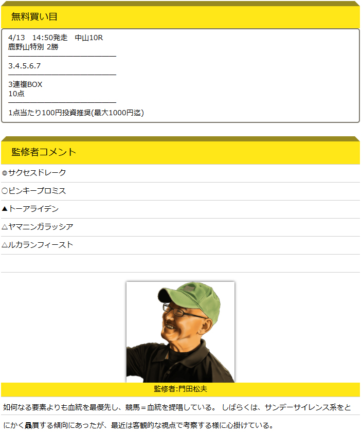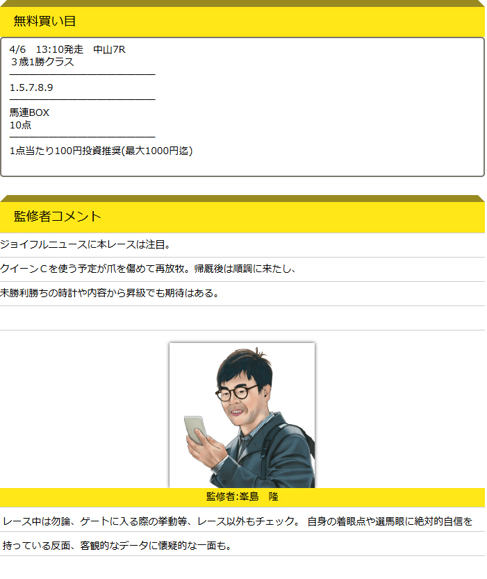 無料予想にも関わらず監修者からのコメントがしっかりしていて