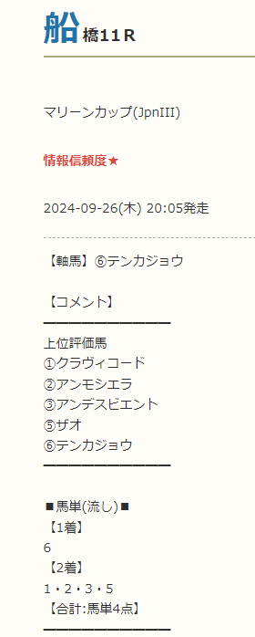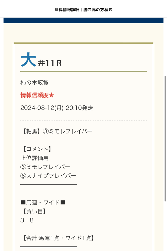 平日の無料予想でこれだけ高配当は本当に感謝しかありません。