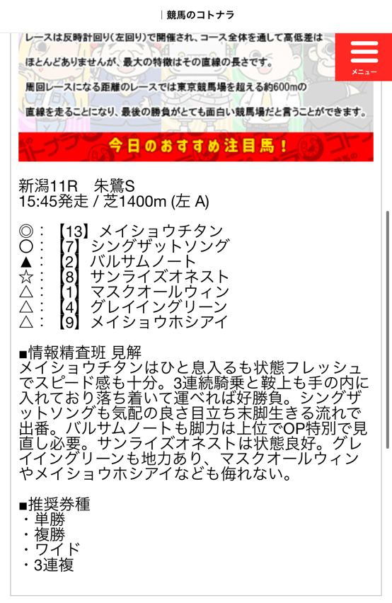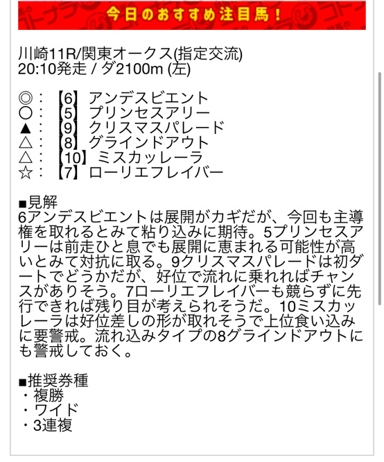 コトナラの無料予想を参考に