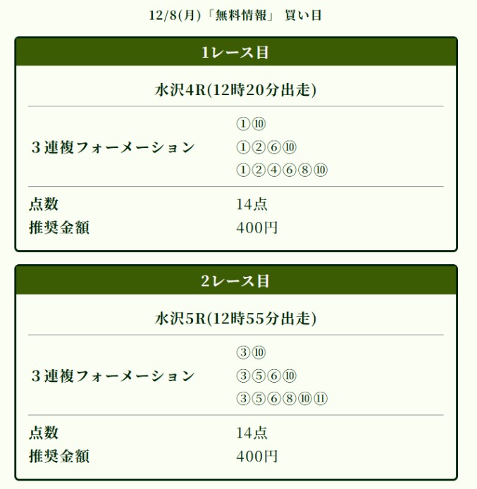 そして11/30(日)に3鞍提供2鞍的中というまずまずの結果!