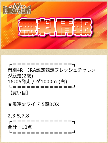 無料予想的中の法則の条件も満たしていたけどまさか2日連続中央無料的中は最高!