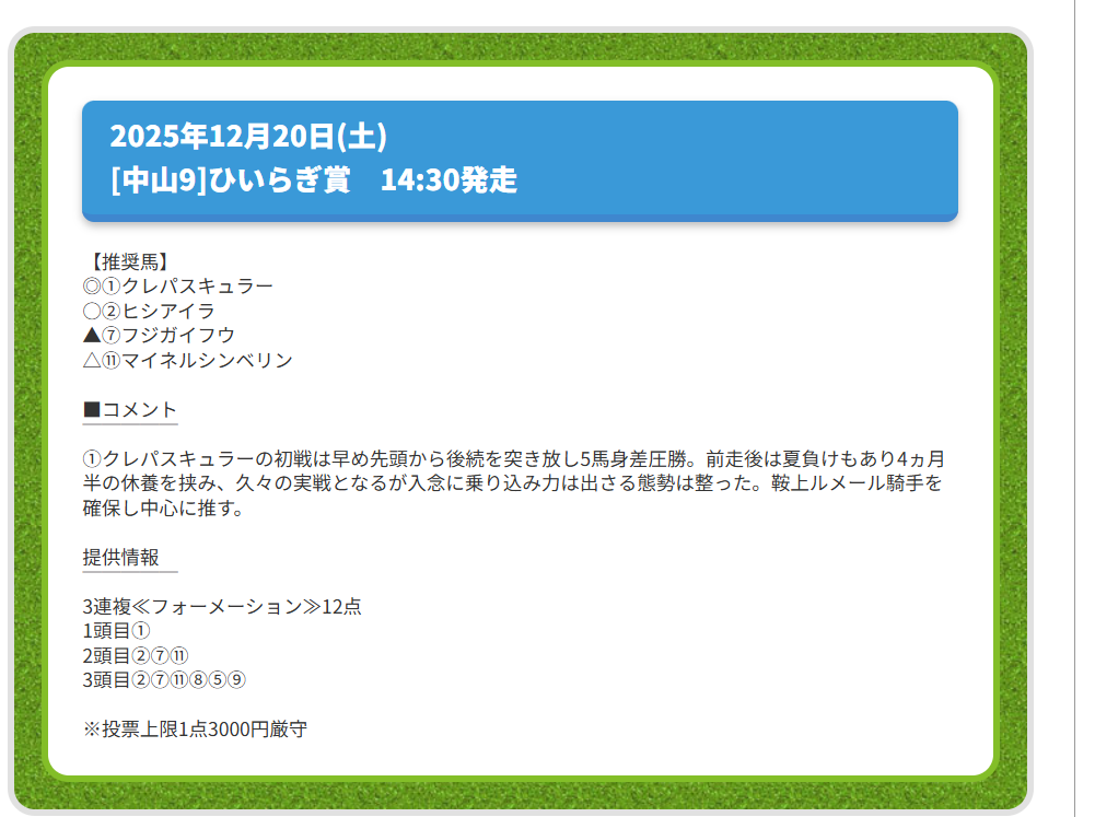 ここの口コミでは割と多くの人が今年最初の中央競馬の無料予想で的中報告が上がってる!