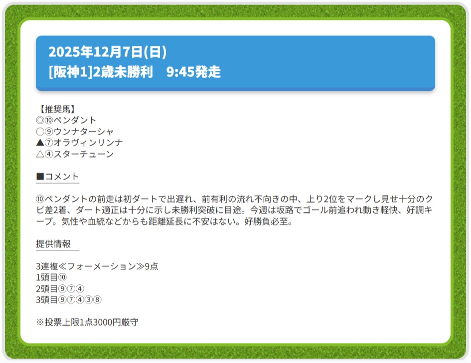 それでもスマホをポチポチしてターフビジョンの無料予想だけは手に入れて