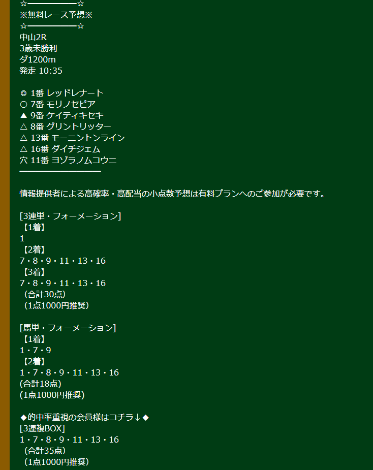 無料での的中がマストなのに